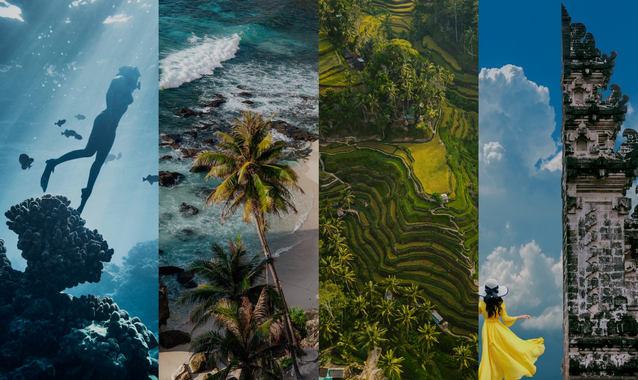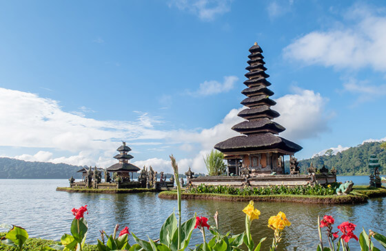 Drive westwards to explore the charming Tabanan Regency, revealing terraced rice fields of emerald green, volcanic mountains and black-sand beaches dotted with fishing communities. Or head north to explore the volcanic lakes near the mountain town of Bedugul, including Lake Bratan with its photogenic and stunningly positioned Pura Ulun Danu – one of Bali’s most important temples.